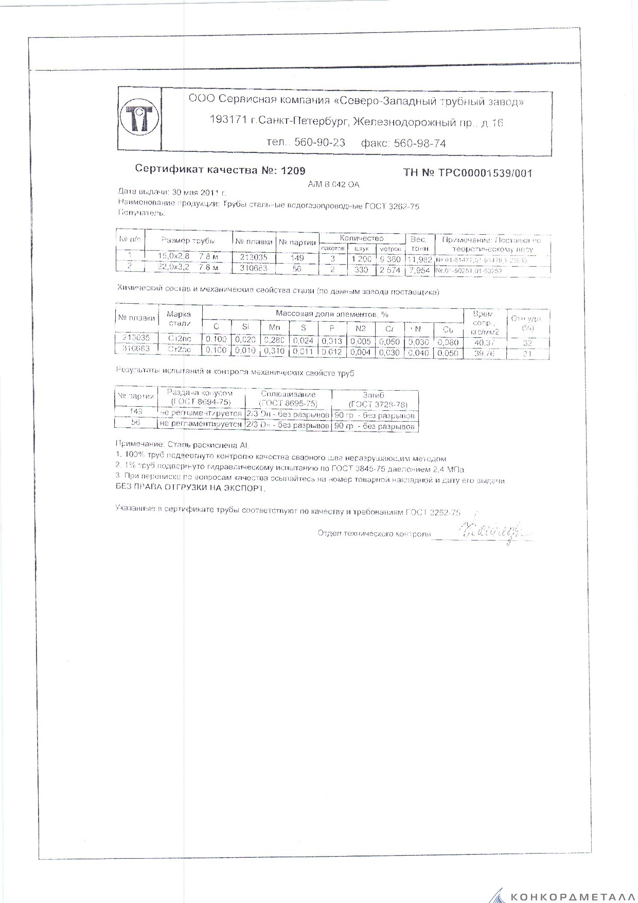 С каждой товарной позицией мы предоставляем все сертификаты и паспорта качества, а также товарно-транспортную накладную.